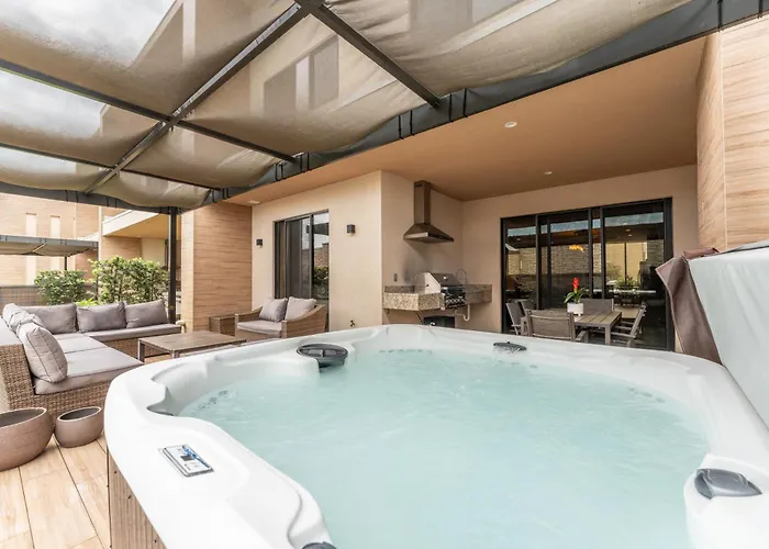 Deze 4-slaapkamer 3081 Magic Village 4Suites Jacuzzi Near 192 8 Min Disney heeft een buitenzwembad voor de ontspanning van de gasten en ligt op 15 minuten met de auto van Typhoon Lagune. Deze villa is in de Celebration wijk gelegen en biedt een sauna voor een ontspannen verblijf.